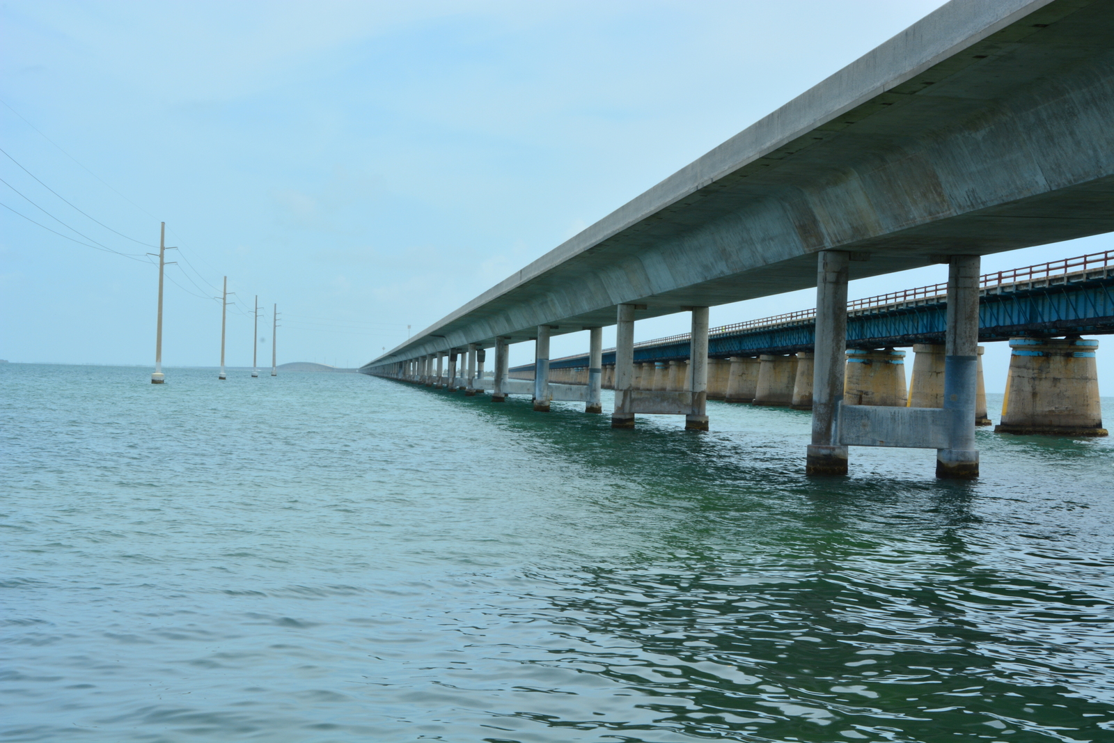 キーウェストまで行く橋の一番長く、有名なセブンマイル(11キロ)を45マイルで走行
